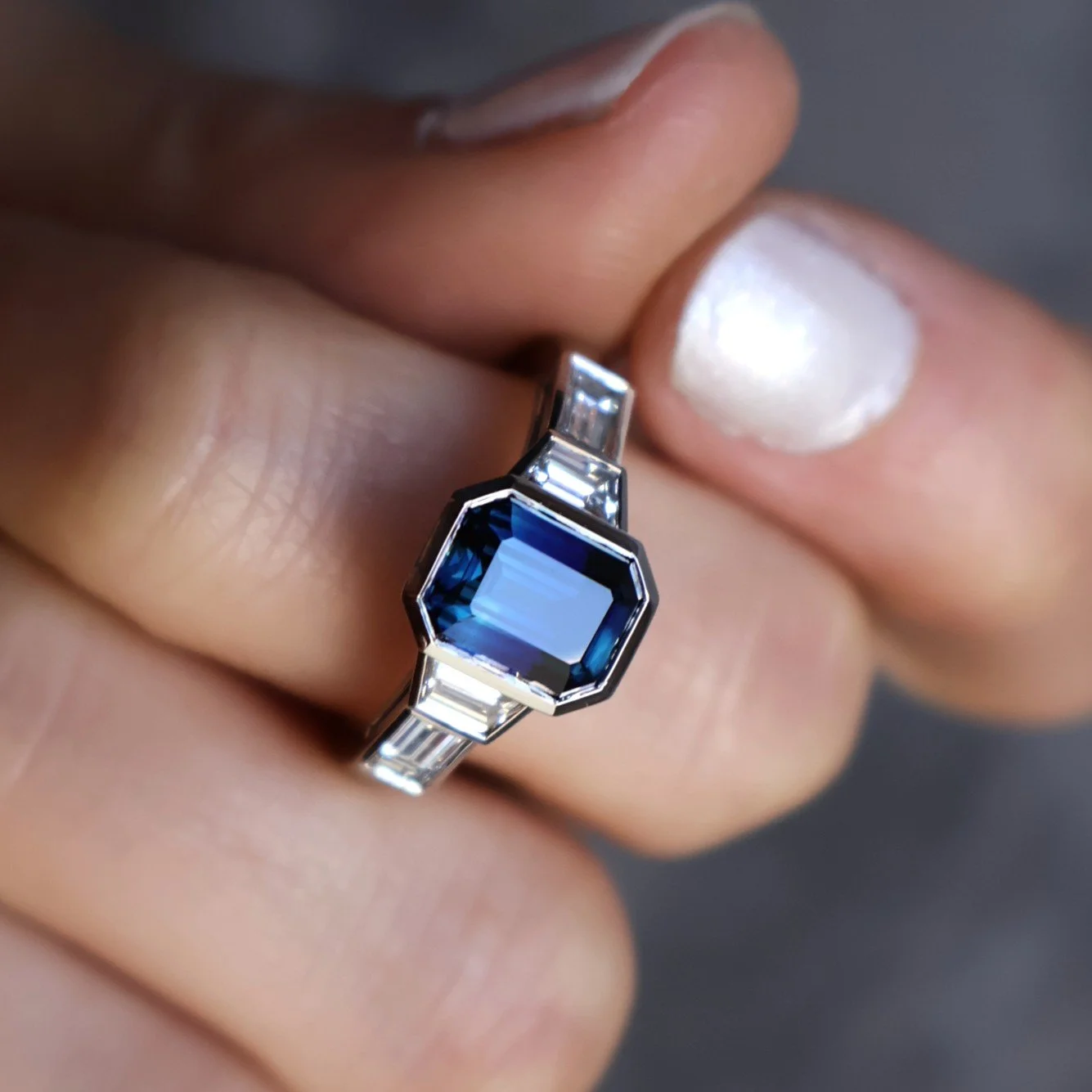 Symmetrical semi bezels look better with gemstone shapes that are not square or round, ie, emerald-cut over asscher-cut and oval rather than round.