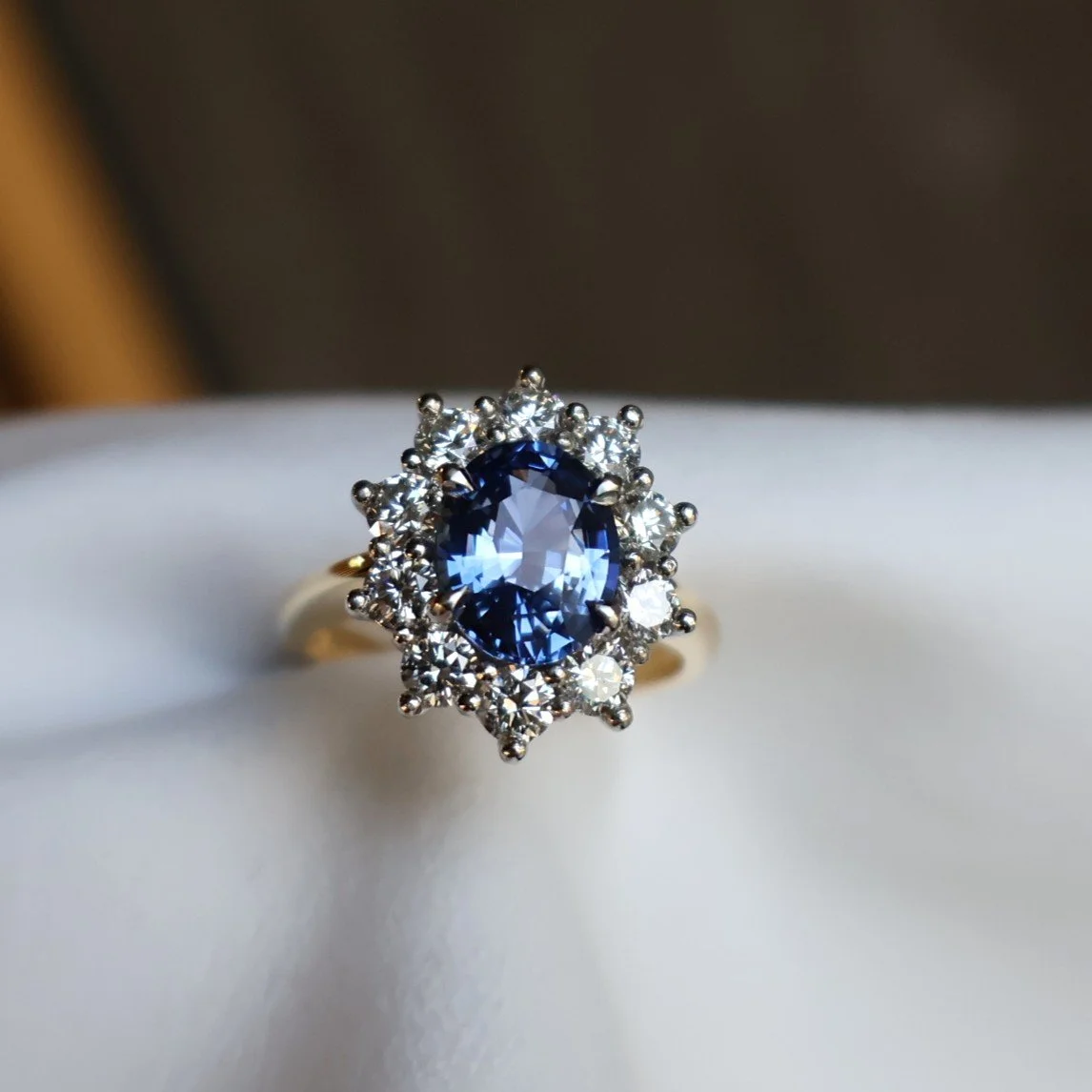 8. Oval Blue Ceylon Sapphire & Diamond Ring | Classic Halo Style