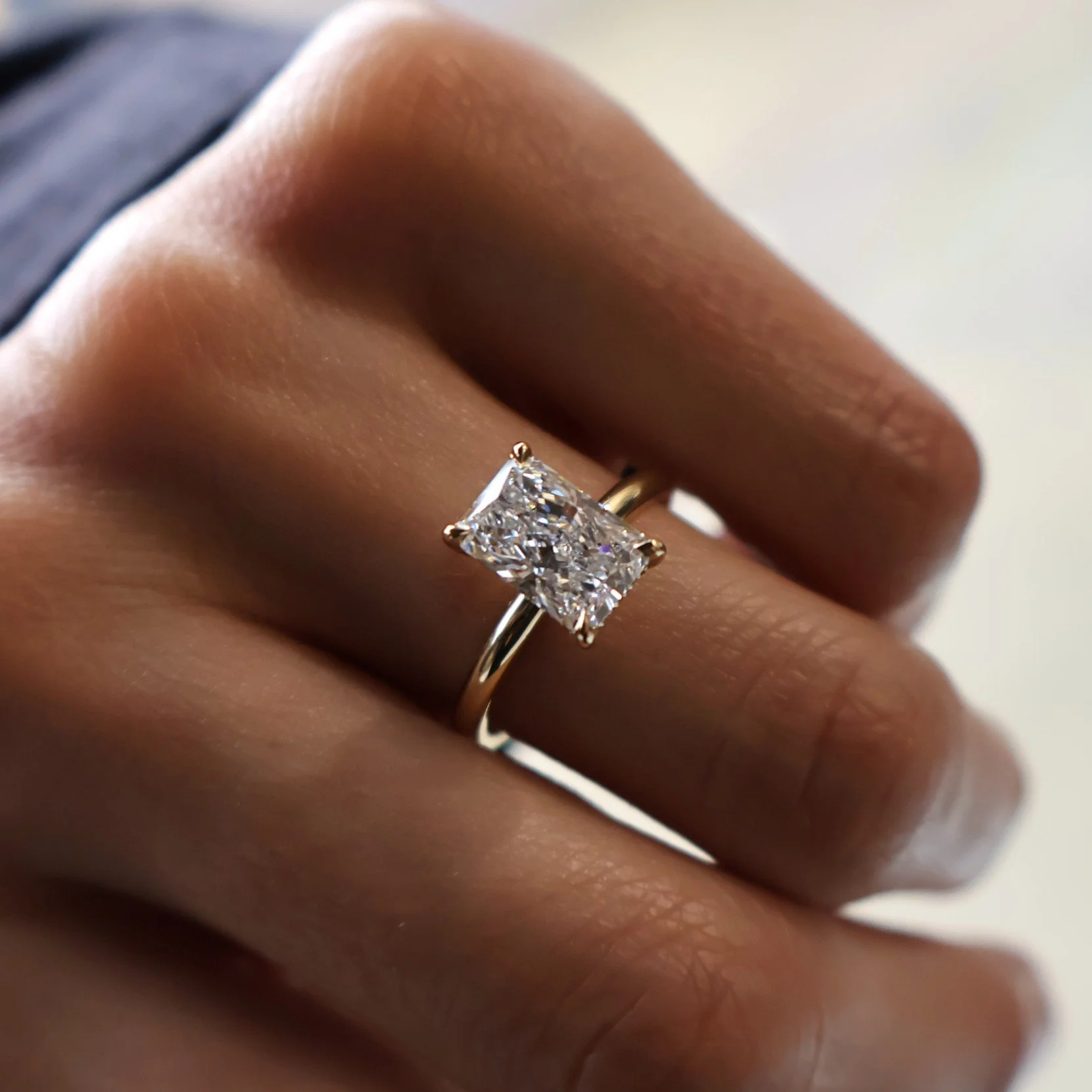 The engagement ring is designed to suit the proportions of the chosen center stone.